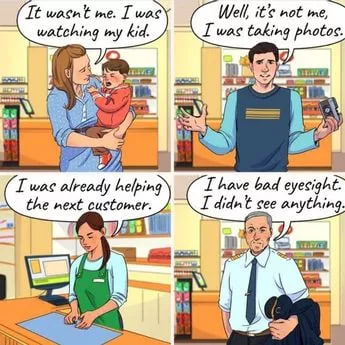 Всичко, което трябва да направите, е да погледнете снимката по-долу и да определите кой от хората в магазина е откраднал нечий портфейл. Трима от хората на снимката казват истината, но един от тях лъже.