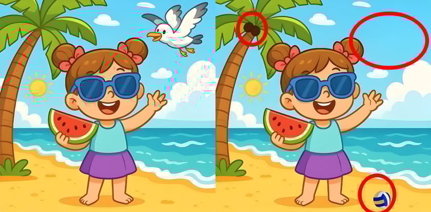 И така, готови ли сте за следващото предизвикателство? Разгледайте внимателно двете изображения на момичето на плажа. На пръв поглед може да изглеждат еднакви, но има три малки разлики. Мислите ли, че можете да откриете всички тях за 10 секунди? Опитайте и проверете остротата на зрението си!