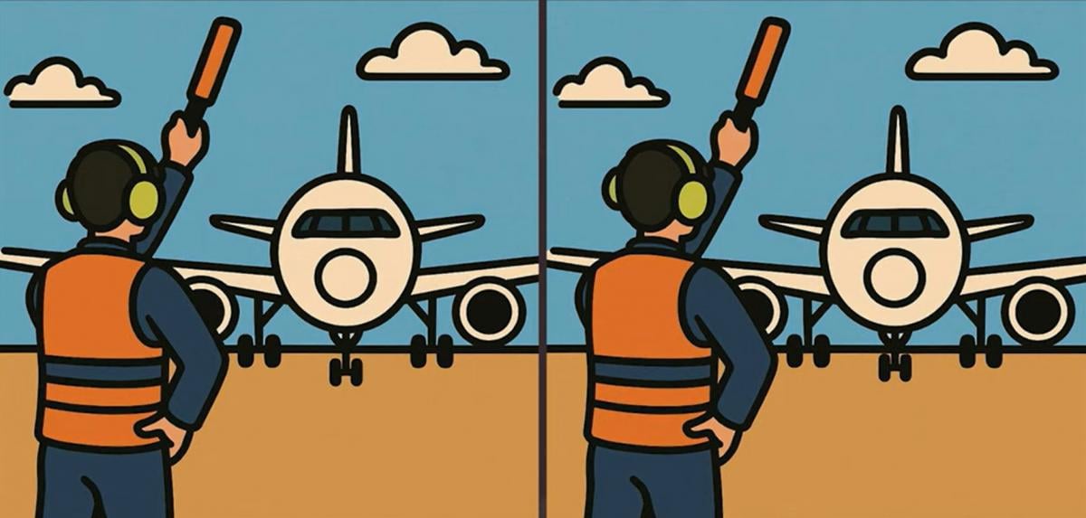 И така, готови ли сте за следващото предизвикателство? Вгледайте се внимателно в двете изображения на ръководител на полети, който направлява самолет. На пръв поглед те изглеждат еднакви, но има три малки разлики. Мислите ли, че можете да ги откриете за 45 секунди? Опитайте и проверете остротата на зрението си!