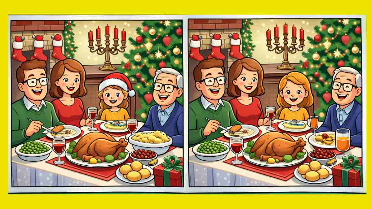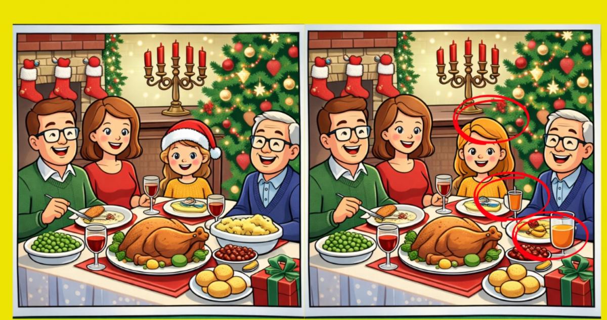 И така, готови ли сте за следващото предизвикателство? Разгледайте внимателно две изображения на коледна семейна вечеря. На пръв поглед те може да изглеждат еднакви, но в тях се крият 3 малки разлики. Мислите ли, че можете да откриете всички тях за 16 секунди? Опитайте и проверете остротата на зрението си!